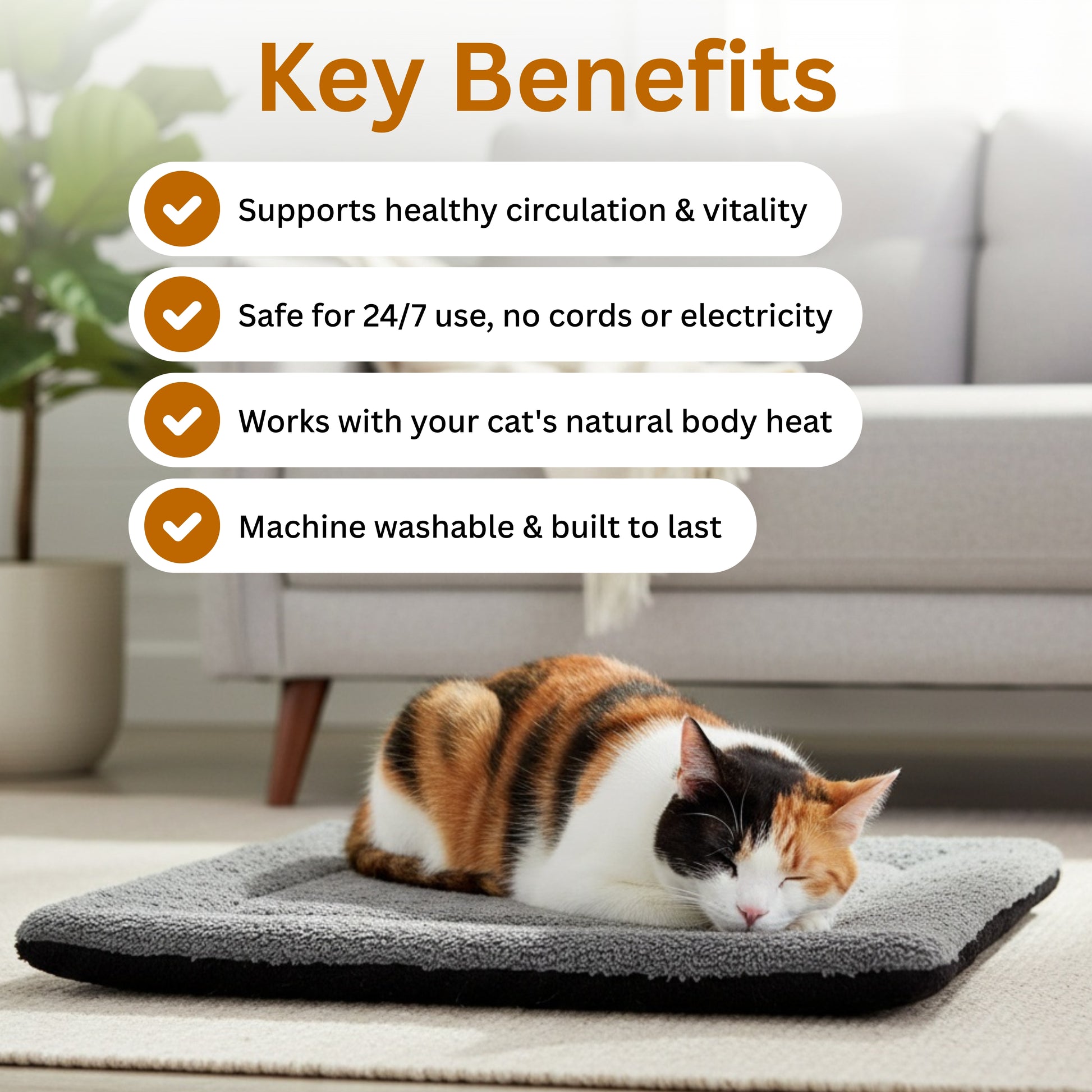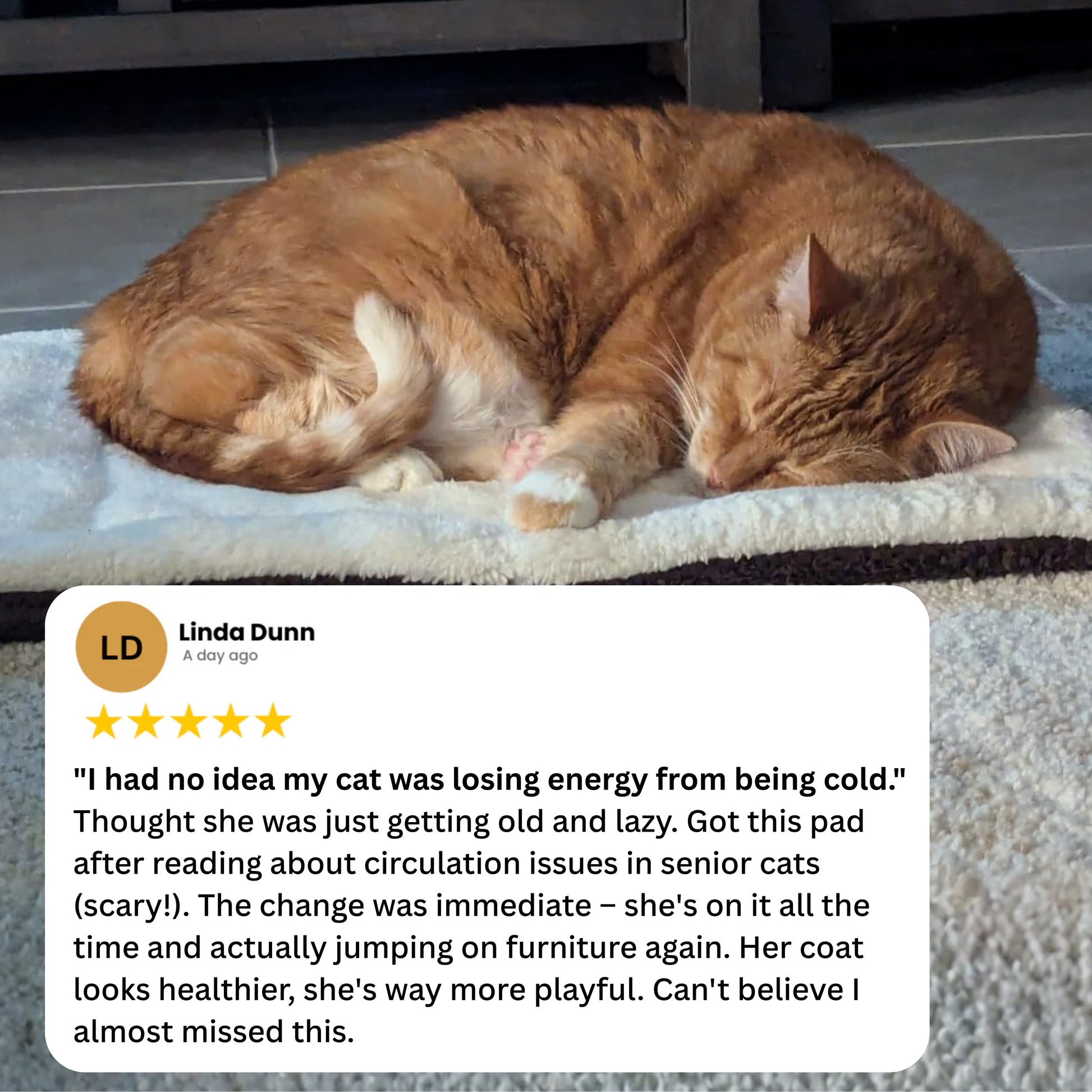 Most cat parents don't realize low body temperature affects energy, mobility, and long-term health. This passive thermal pad supports natural warmth and circulation daily — helping your cat stay vibrant, not just comfortable.